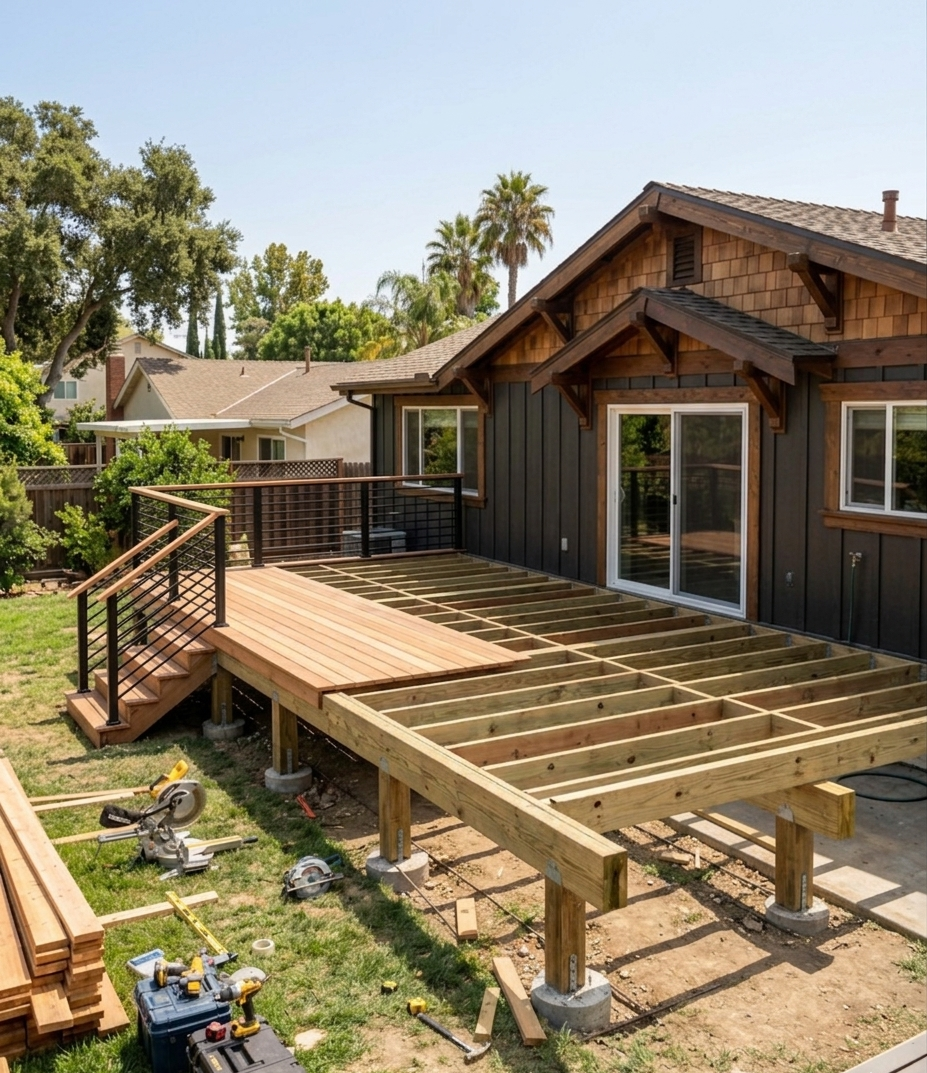 Hillside decks often require deeper foundations, structural engineering, and careful coordination with inspectors and city permitting departments. Proper structural design is essential to ensure the deck is safe and stable on sloped terrain.